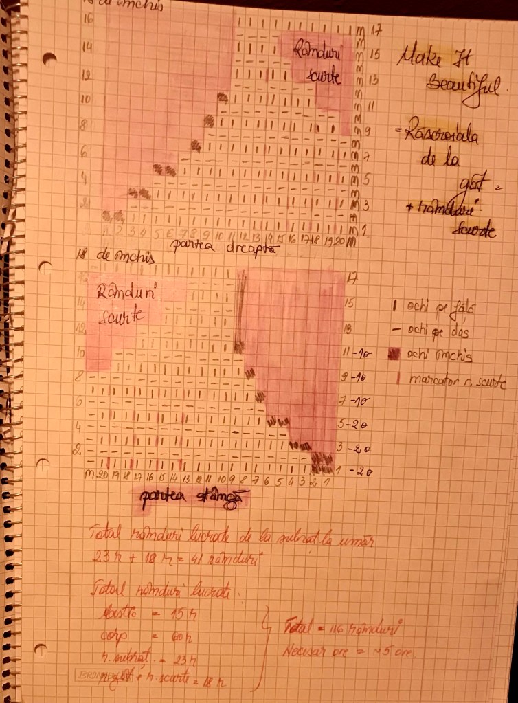 - pentru spate: 31 de randuri apoi rascroiala de la gat încă 3 randuri