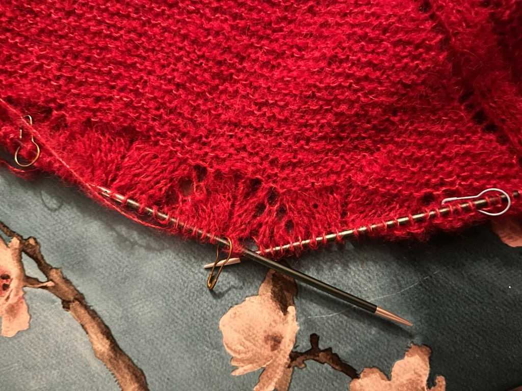 🪡 s-au încărcat pe andrele 66 ochiuri + 2 ochiuri de margine;