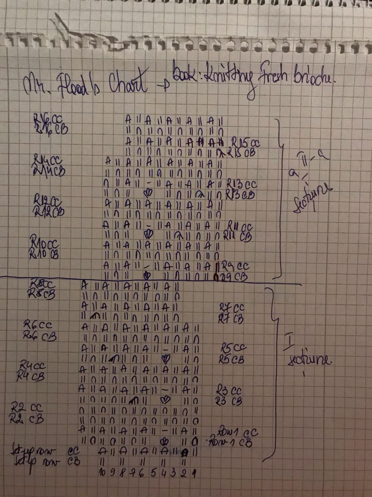 Aveți nevoie de un multiplu de 10 ochiuri + 5 de simetrie și de 16 rânduri care se vor tot repeta. Aceste 16 rânduri sunt împărțite in 2 sectiuni de câte 8 rânduri.