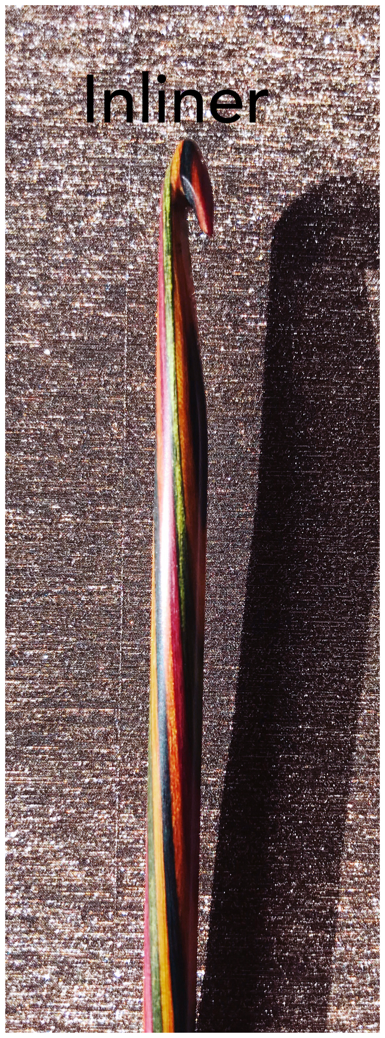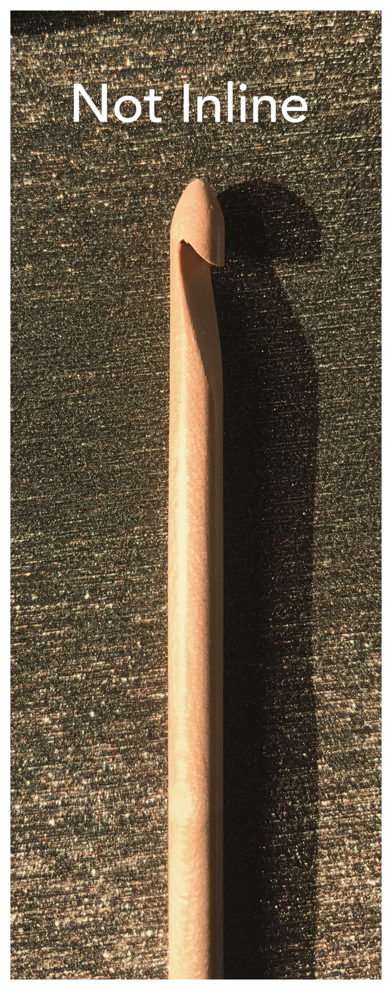 The “Inline” crochet hooks have a notch on the head that almost does not protrude from the crochet hook cylinder instead, the “Not Inline” crochet hooks have the head notch protruding from the crochet droplet cylinder, as can be seen in the pictures above.